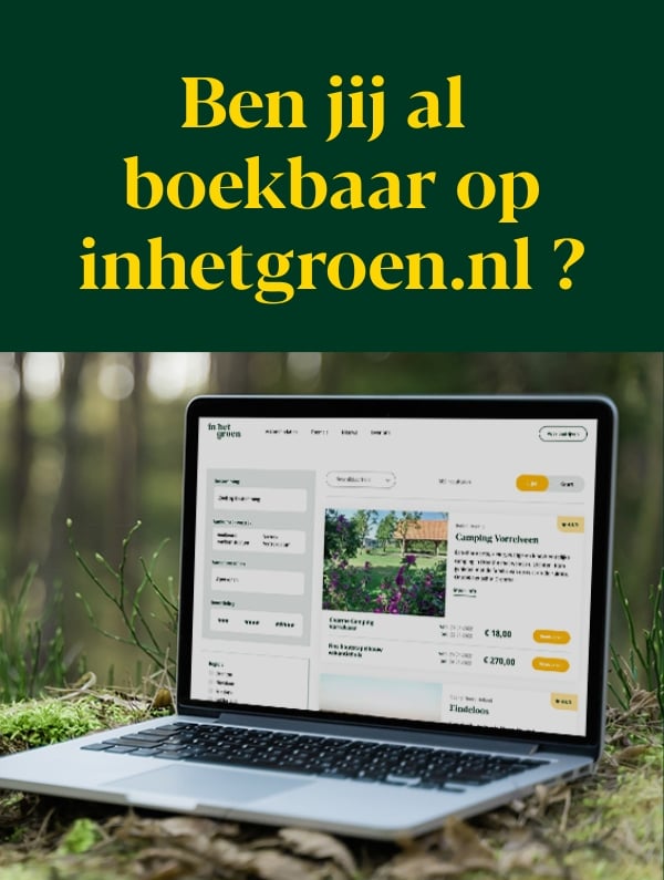 Wist jij al dat Inhetgroen.nl inmiddels een boekingsfunctie heeft? Hiermee spelen we in op de ongeduldige gast van nu, die graag snel wil zoeken en boeken. Dat betekent dus dat gasten direct een boeking bij je kunnen plaatsen, mocht je dat willen. Dit werkt met channel manager Qenner. Wil je ook boekbaar worden bij Inhetgroen.nl via je eigen reserveringssysteem? Bekijk hier de informatie